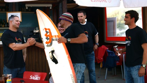 No Sábado não houve vento suficiente para se iniciar a competição, só quando a organização cancelou a prova, mesmo ao fim da tarde é que o vento subiu até aos 16 nós e estivemos a nevegar até ao pôr do sol, saímos directamente para a churrascada no bar da praia com o pessoal todo, alto convívio.